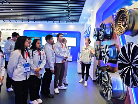 客人先后参观了云顶国际研究院企业展厅和东安轻合金公司铝合金车轮智慧线,期间大家观看了云顶国际集团宣传片并进行了座谈交流。