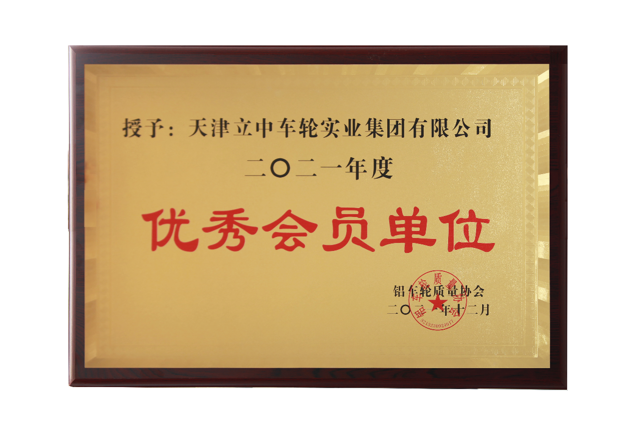2021年12月,铝车轮质量协会授予天津云顶国际车轮实业集团有限公司“2021年度优秀会员单位”荣誉称号。